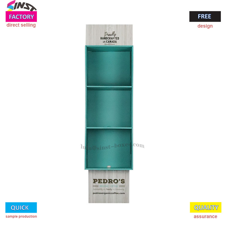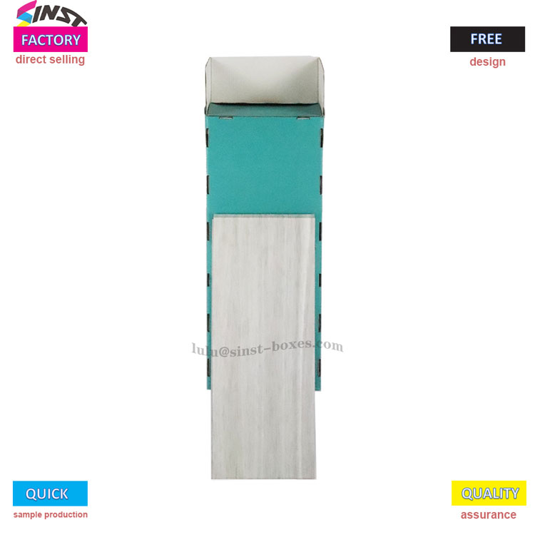 यो स्टेशनरी नालीदार डिस्प्ले र्याक मुख्यतया विभिन्न स्टेशनरी वस्तुहरू प्रदर्शन गर्न प्रयोग गरिन्छ। समग्र शरीर आकारमा आयताकार छ र हल्का काठ वा सेतो नक्कल काठ दाना सामग्रीबाट बनेको छ, जुन स्फूर्तिदायी र बनावट देखिन्छ। तीनवटा खुला भण्डारण डिब्बाहरू अगाडि विशेष रूपमा हरियो वा निलो-हरियो रंगहरूमा डिजाइन गरिएको छ, जुन स्टेशनरी क्रमबद्ध गर्न र भण्डारण गर्नका लागि उपयुक्त छ। चाहे यो किताबहरू, विभिन्न नोटबुकहरू, वा कलमका विभिन्न शैलीहरू, तिनीहरू सबै सुरक्षित रूपमा भित्र राख्न सकिन्छ। यसबाहेक, यो डिस्प्ले र्याकमा थोरै अगाडिको ढलान ट्रापेजोइडल ढाँचा छ, यसले धेरै प्रयास नगरी यसमा वस्तुहरू राख्न र राख्न सजिलो बनाउँछ।