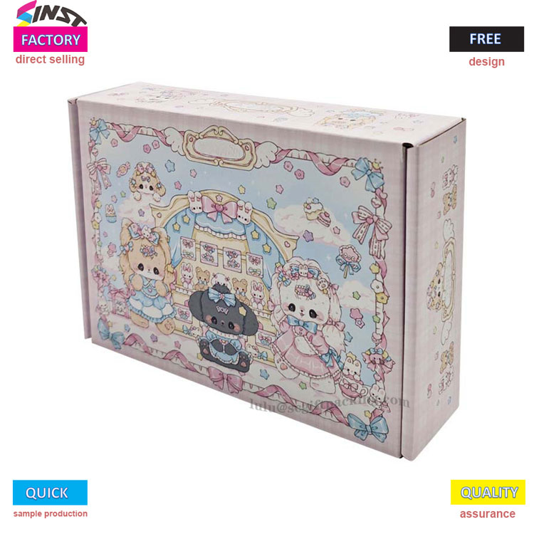 कपडाको लागि रंगीन खरंडेटेड कागजहरू हवाइजहाज बक्सले बत्तीको साथ एक मीठो गुलाबी र color ्ग योजना बनाउँदछ। बाकस कार्टुन विचहरू, साना जनावरहरू, धनुहरू, बादल, र मन, एक ड्रइच र प्यारा शैली सिर्जना गर्ने बक्सले भरिएको छ। सेवा को लागी देखा पर्न बाट, यो पूर्णव्र शक्ति प्याकेज र ब्रान्ड अपील वृद्धि गर्दछ।