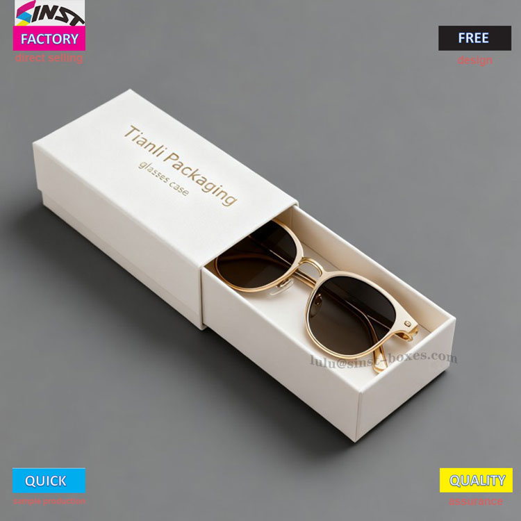 चश्मा उपहार बक्सहरू उच्च-अन्त चश्मा ब्रान्ड प्याकेजिङ, उपहार दिने, प्रवर्द्धन गतिविधिहरू, र खुद्रा बिक्रीको लागि व्यापक रूपमा प्रयोग गरिन्छ। र हाम्रो चश्मा उपहार बक्स भित्र नरम EVA स्पन्ज संग लाइन गरिएको छ, विशेष गरी चश्मा को एक अवतल आकार दिन डिजाइन। तपाईंसँग गोलो फ्रेम, स्क्वायर फ्रेम वा फराकिलो खुट्टाहरू भए पनि, तिनीहरूलाई सुरक्षित रूपमा समात्न र हल्लाउन डर बिना ढुवानी गर्न सकिन्छ; बक्स कभर तातो मुद्राङ्कन शब्दहरूसँग छापिएको छ, जुन एकदम उच्च-अन्त देखिन्छ र व्यक्तिगत र उपहार दुवै प्रयोगको लागि उपयुक्त छ।